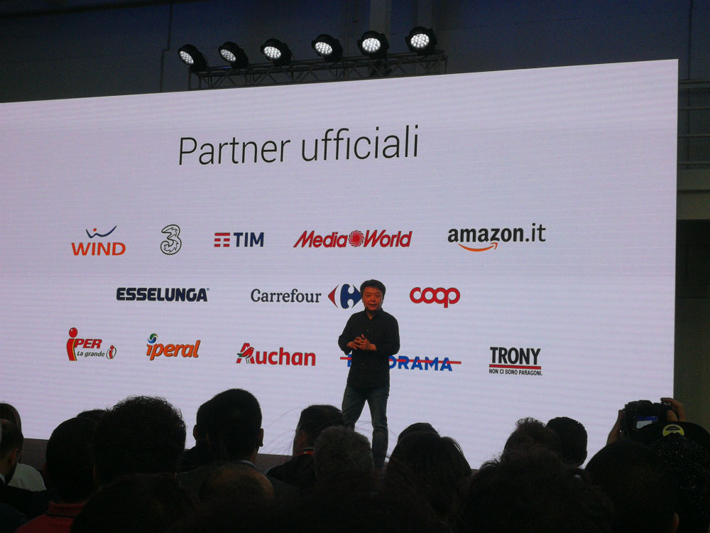 Inoltre i partner ufficiali di Xiaomi in Italia saranno Wind, 3, Tim, Mediaworld, Amazon.it, Esselunga, Carrefour, Coop, Iper, Iperal, Auchan, Panorama e Trony; invece i distributori ufficiali saranno Italy Wing, Givi Distribuzione e Datamatic.
