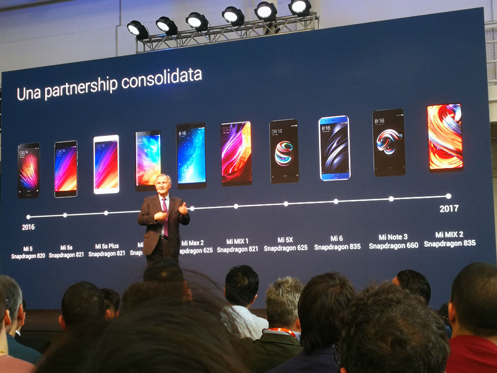 E’ poi salito sul palco Enrico Salvatori, il Senior Vice Presidente e Presidente di Qualcomm Europe, per dare il benvenuto a Xiaomi in Europa, far risaltare la partnership tra Qualcomm e Xiaomi che va avanti già da qualche anno, e per parlare delle prestazioni del nuovo Snapdragon 845.