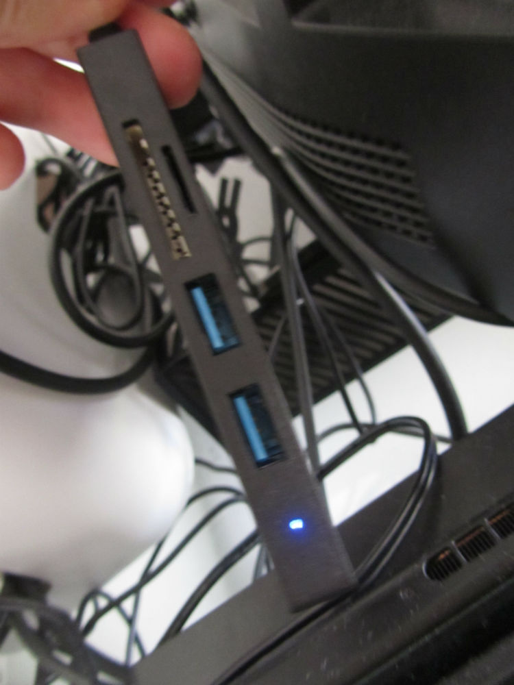 Nella parte frontale laterale sono presenti il LED di stato (blu quando acceso), 2 porte USB 3.0 e gli ingressi per le schede SD e Micro SD, mentre nella parte laterale sinistra è presente un’altra porta USB 3.0.