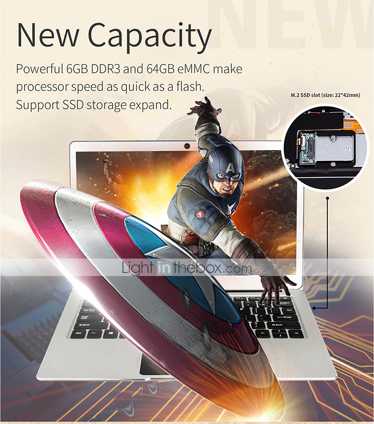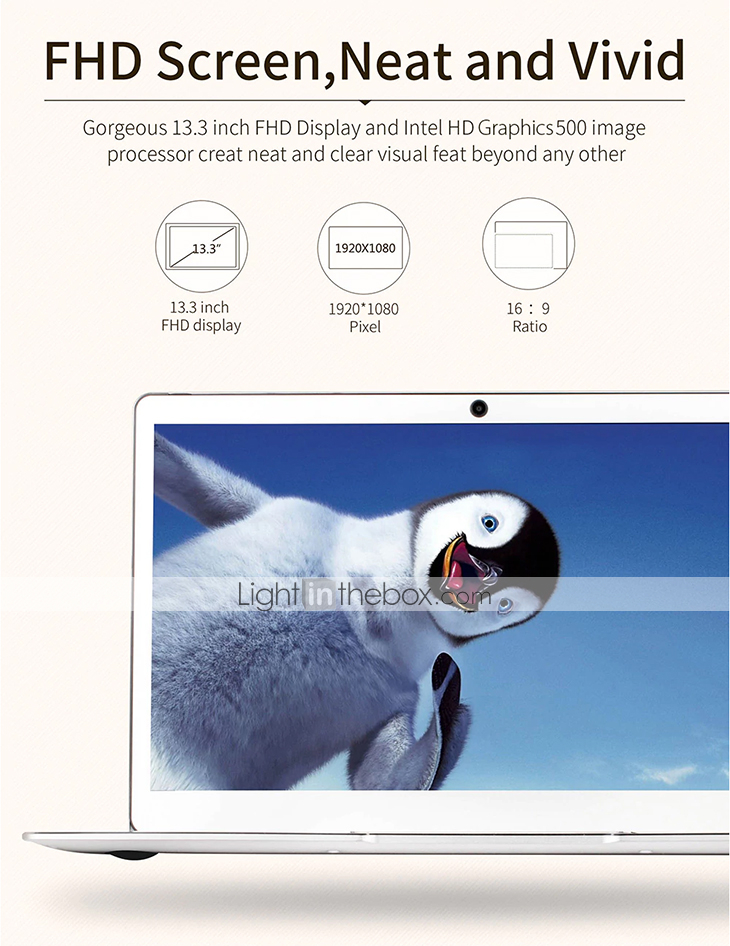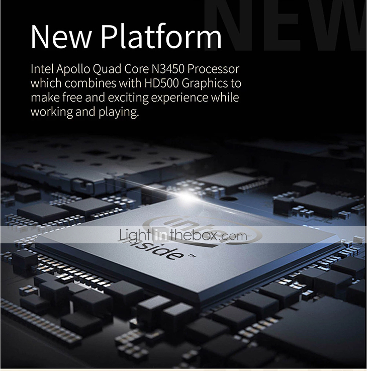 Ha come sistema operativo Windows 10, un processore Intel Apollo Quad Core N3450, una GPU Intel HD500 Graphics con 2GB di RAM, ha uno schermo da 13.3″ in 16:9 con una cornice di soli 10.55mm e risoluzione 1920×1080 Full HD, ha una RAM da 6GB DDR3 e una memoria interna da 64GB eMMC, espandibile tramite SSD M.2.