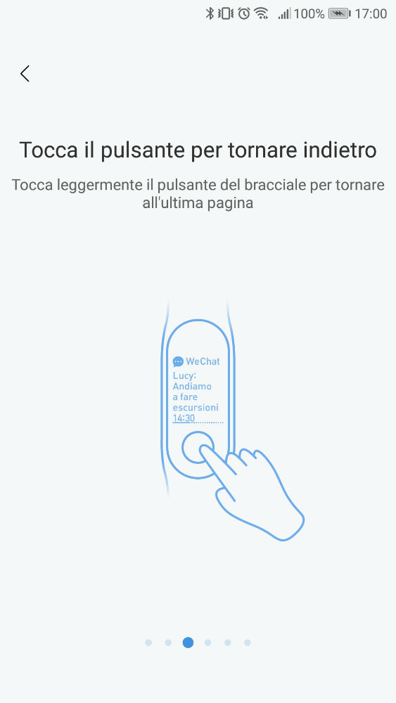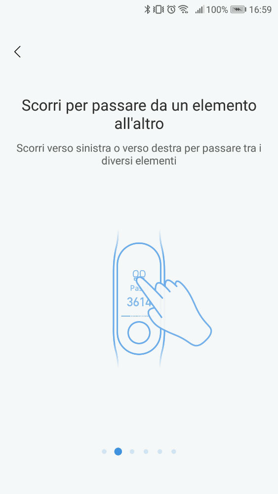 Apparirà una sorta di tutorial sull’utilizzo di Xiaomi Mi Band 3, sarà possibile attivare delle funzioni come la vibrazione della smartband all’arrivo di una chiamata, di un SMS, notifiche delle app (Whatsapp, Facebook Messenger, Telegram, ecc.), sveglia, l’avviso di sedentarietà (per avvisarvi se rimarrete troppo a lungo seduti), le notifiche degli obiettivi e la modalità non disturbare.