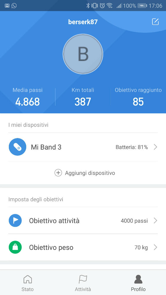 Una volta scaricata ed installata, dovrete fare l’accesso con il vostro account Mi (io già ne possedevo uno) oppure effettuare una nuova registrazione e configurarla con il sesso, data di nascita, altezza, peso e il numero di passi che intenderete fare giornalmente, poi sarà possibile accoppiare Xiaomi Mi Band 3 con lo smartphone.