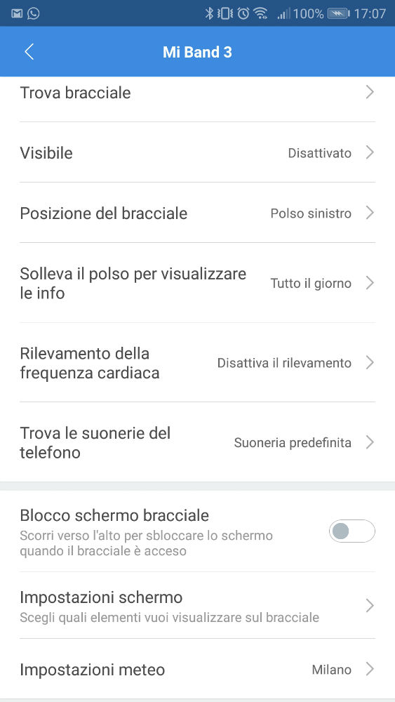 Si potrà sbloccare in automatico lo smartphone, quando terrete Xiaomi Mi Band 3 nel raggio d’azione e potrete anche renderlo visibile ai dispositivi vicini (di base è invisibile).
