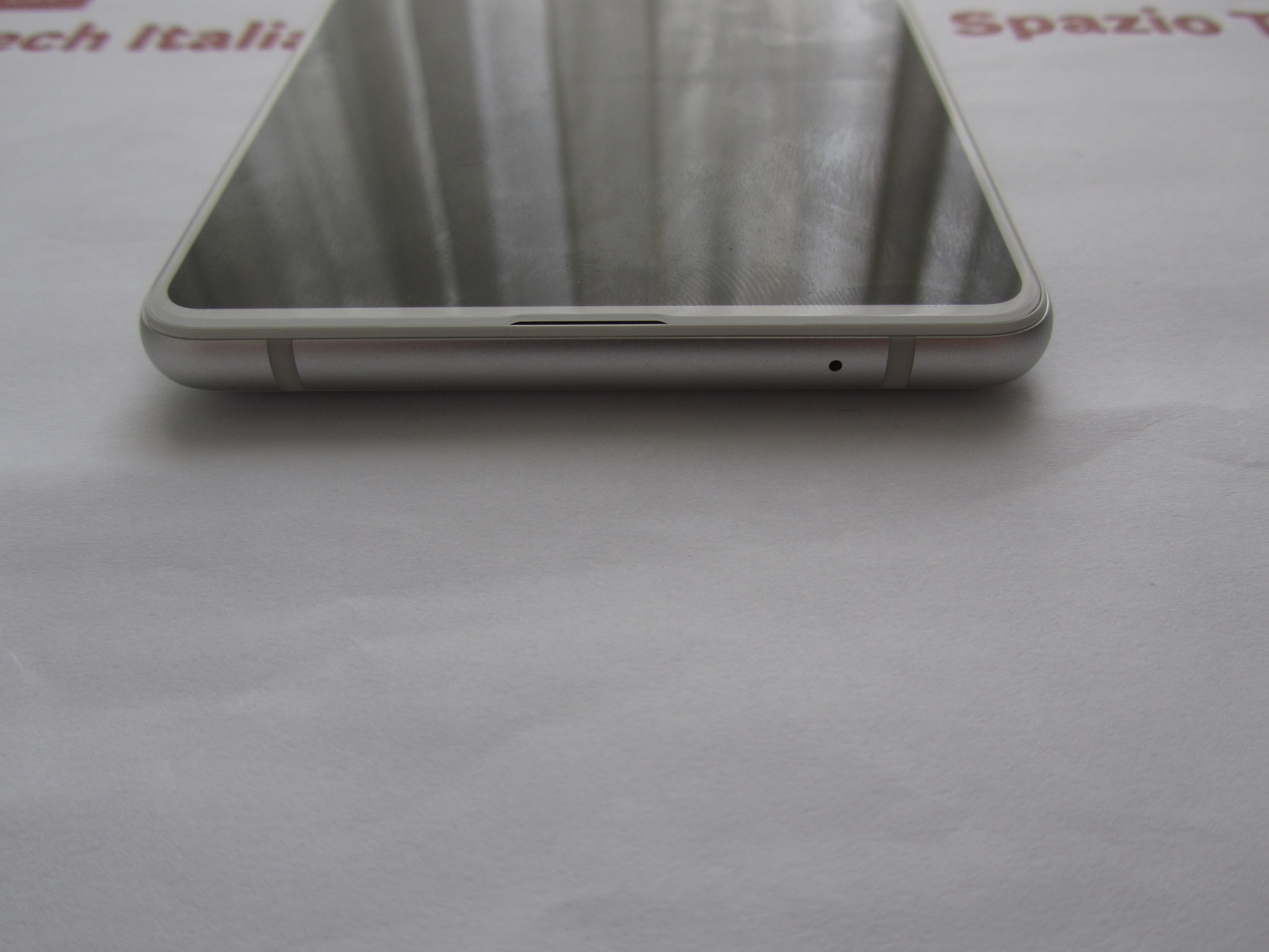 Ha un profilo in metallo opaco, nella parte sinistra troviamo il carrello SIM, nella parte destra il bilanciere del volume e il pulsante Power, nella parte superiore il microfono per la riduzione del rumore ed infine nella parte inferiore, il microfono, la porta USB C e l’altoparlante.