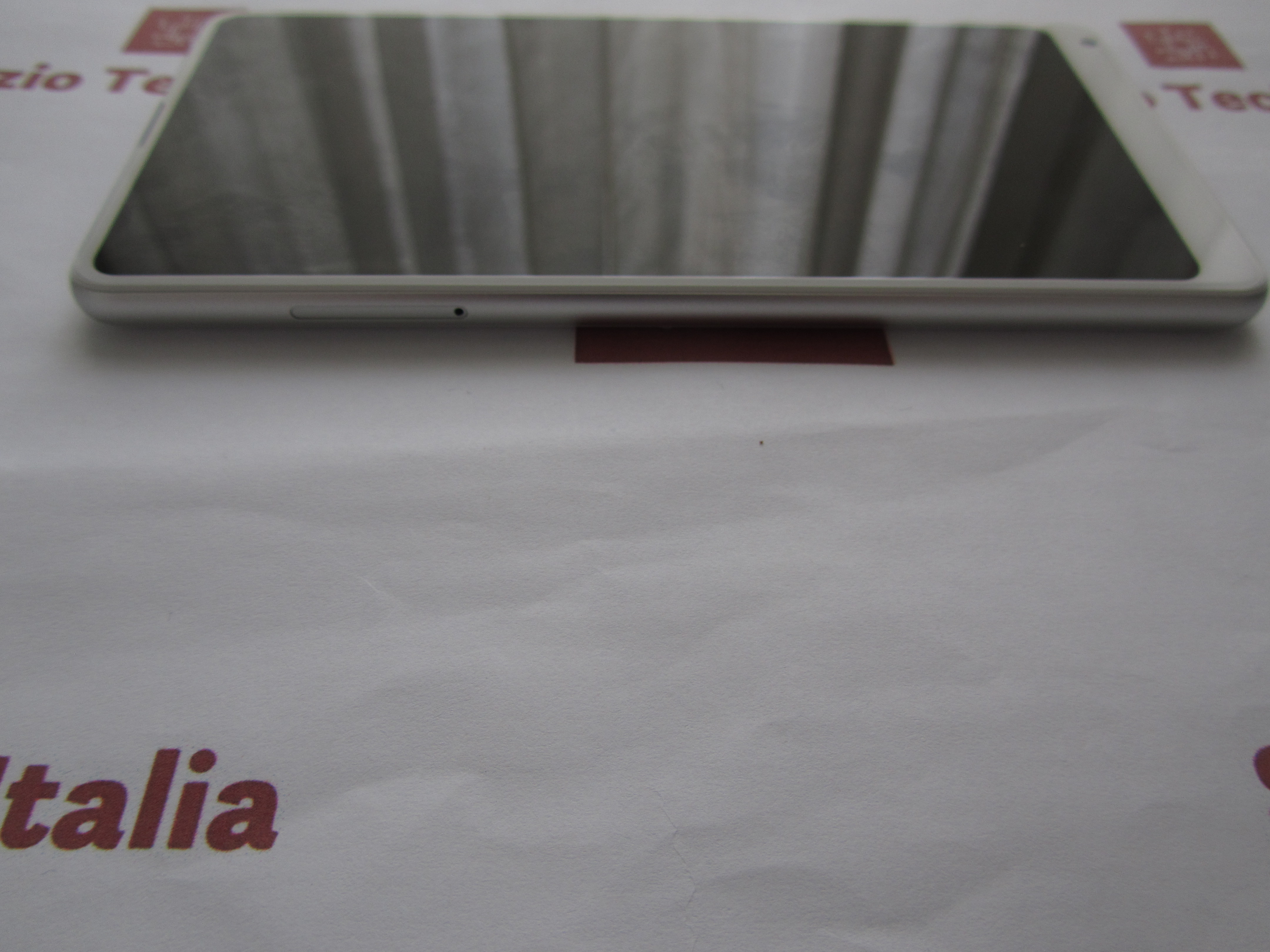 Il peso è consistente con i suoi 189g, ma dà una sensazione di resistenza, nella parte frontale troviamo, partendo dall’alto verso il basso, il sensore di prossimità ad ultrasuoni, il sensore di luminosità, lo speaker, lo schermo da 5.99 pollici, il LED di notifica e la fotocamera frontale da 5 Megapixel.
