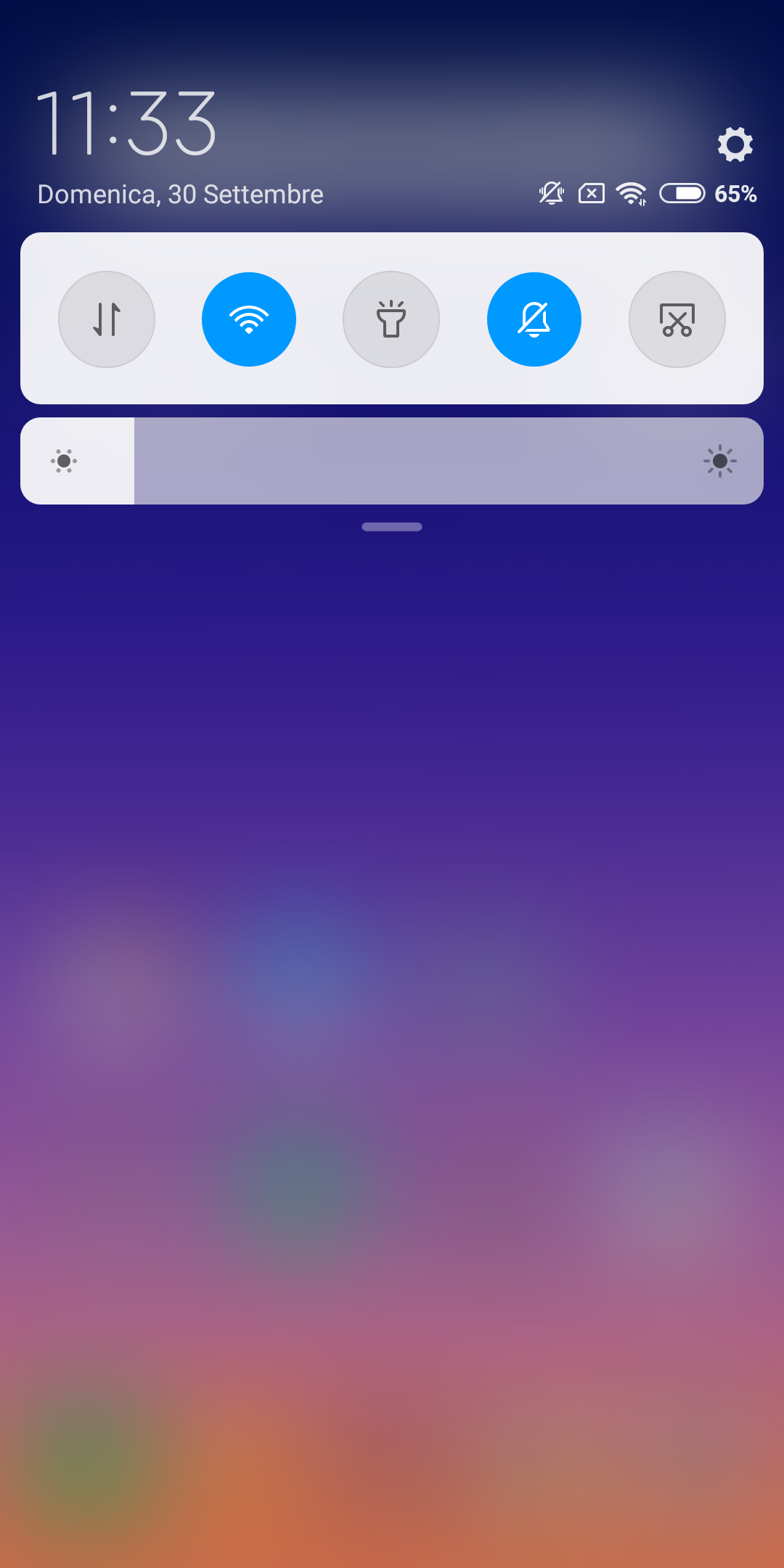 Nel menu a tendina troviamo i classici toggle, insieme alla regolazione della luminosità, e le notifiche.