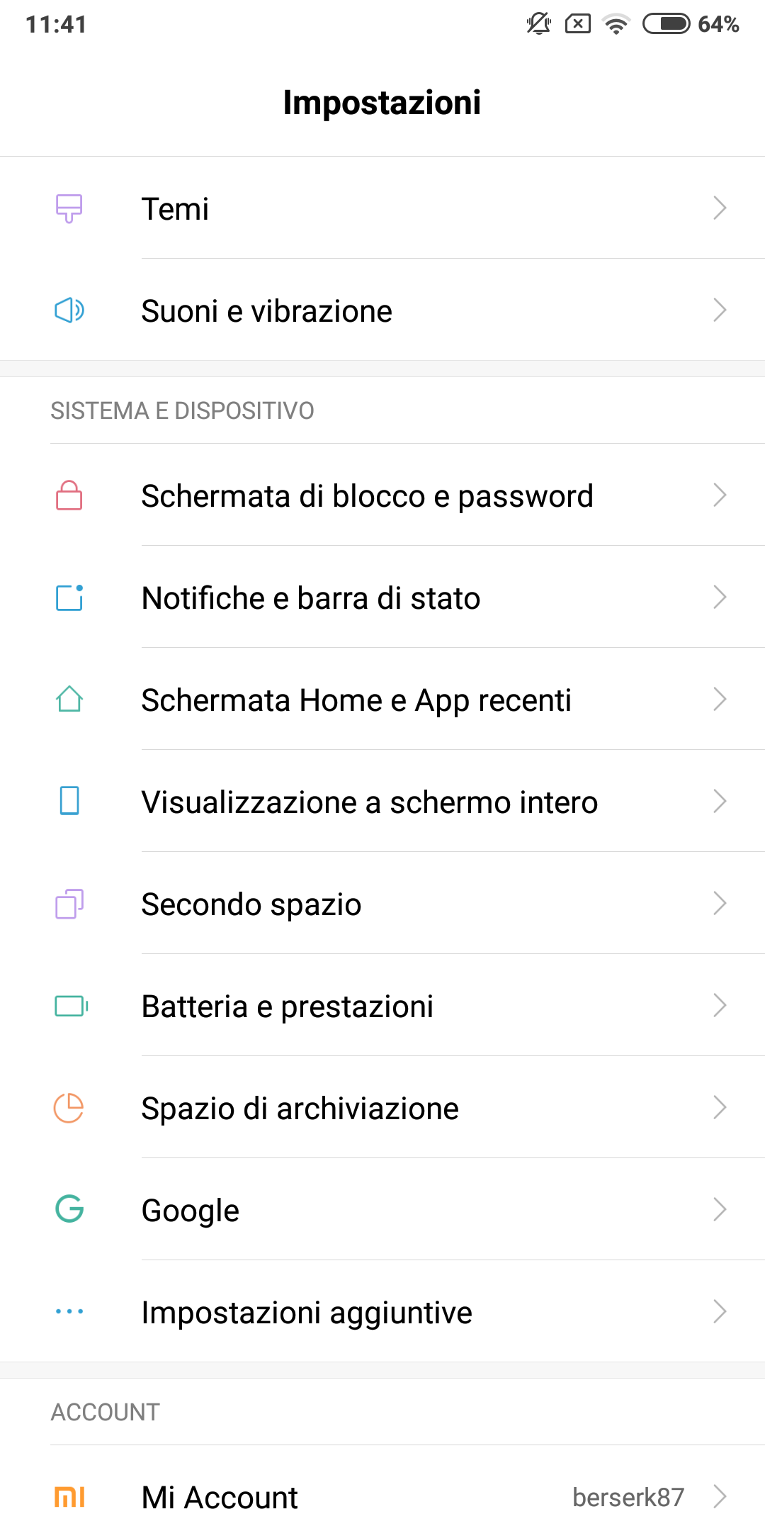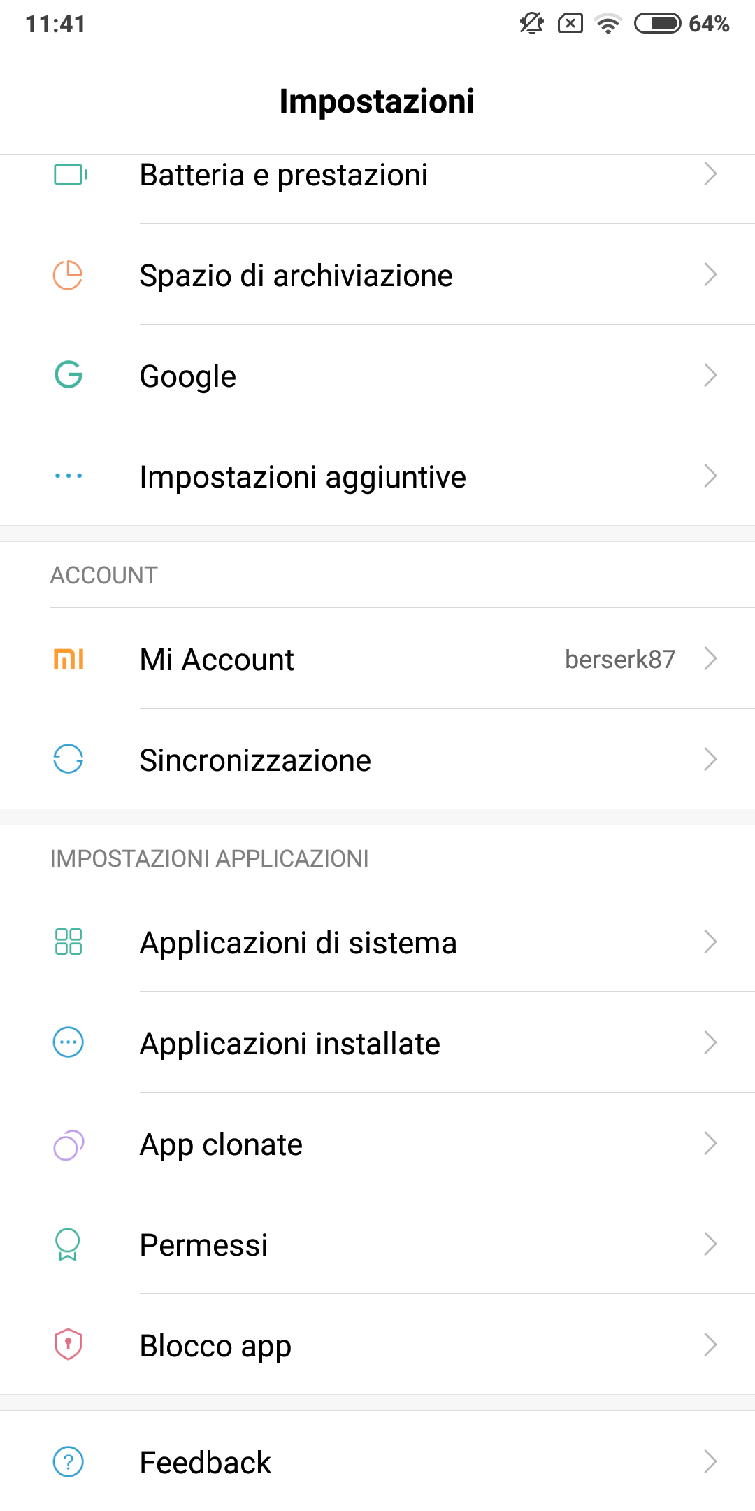 –Mi Account: per le informazioni sul proprio account Xiaomi e lo spazio sul Mi Cloud (il cloud di Xiaomi).