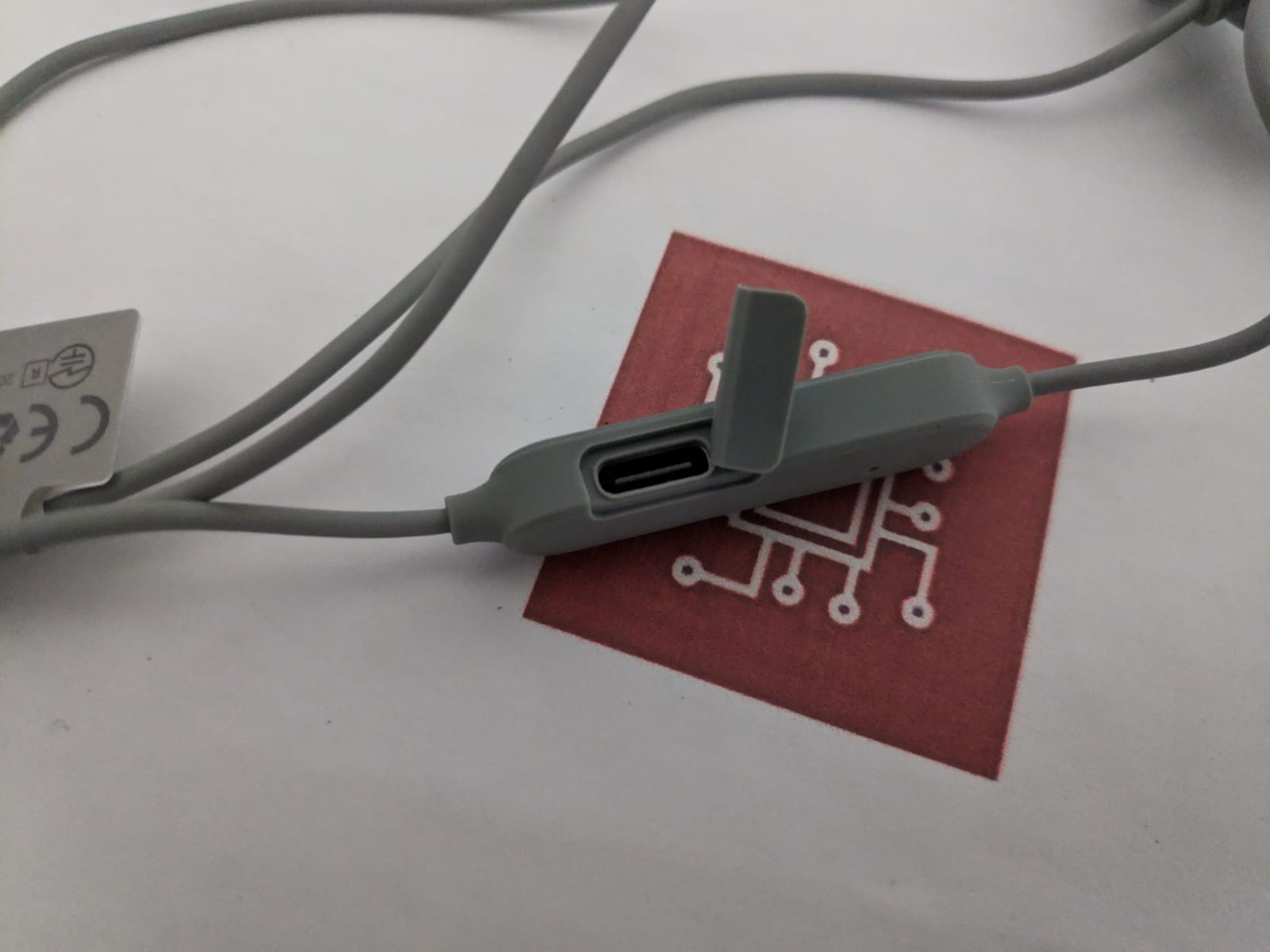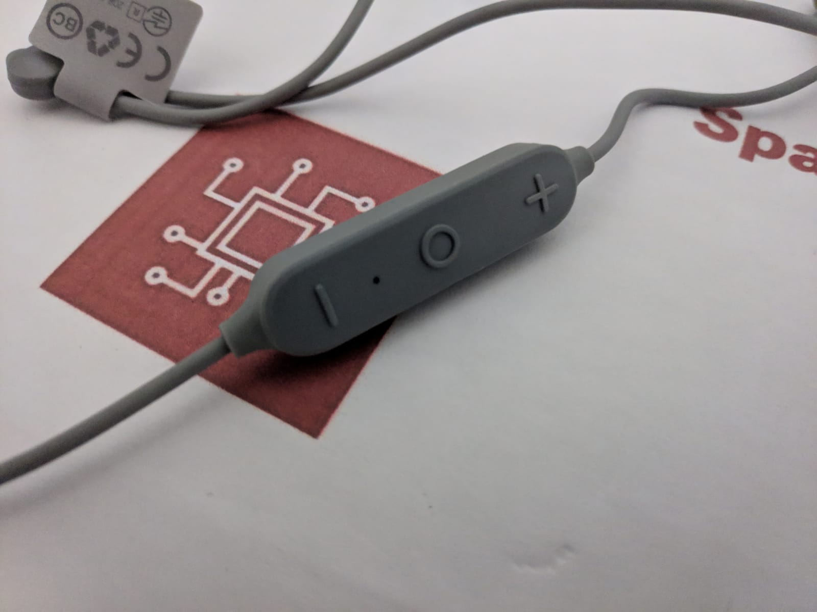 Sono collegate tra loro da un cavo grigio in gomma, dove è presente anche la pulsantiera con la porta di ricarica USB C, il microfono, l’indicatore LED e i pulsanti Volume +/traccia successiva, Volume -/traccia precedente e multifunzione.