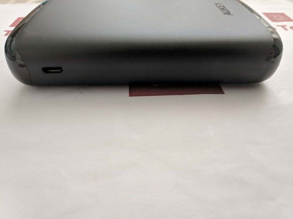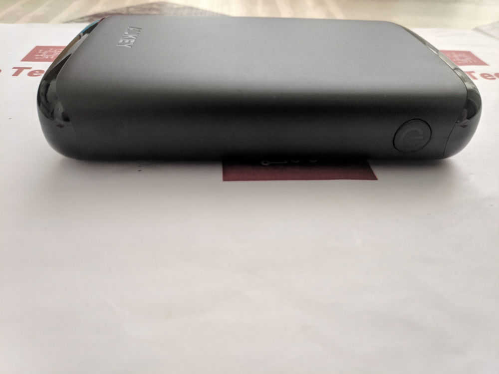 Aukey Power Bank da 10000mAh con Power Delivery 2.0 e Quick Charge 3.0 PB-Y22 è fatta con un’ottima plastica, come Aukey ci ha già abituato, ha una superficie nera opaca resistente alle impronte e sta nel palmo di una mano.