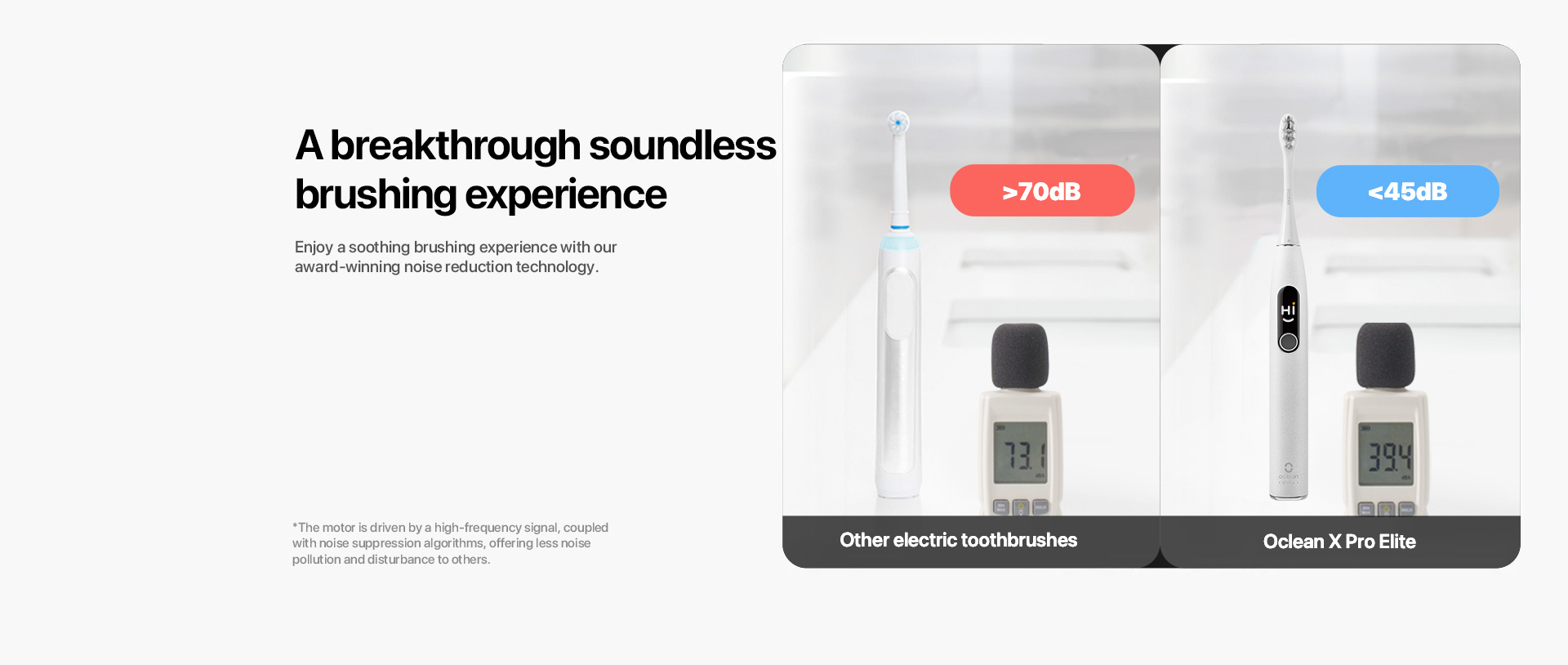 E’ più silenzioso di qualsiasi altro spazzolino elettrico, grazie ad una tecnologia originale di riduzione del rumore, mantiene il rumore a soli 45 db senza ridurre la potenza di pulizia.