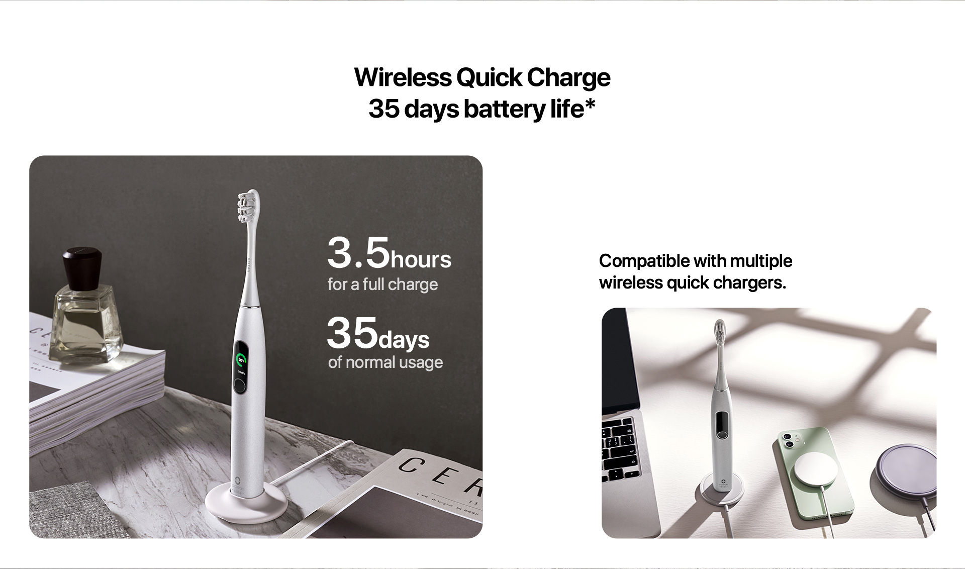 Ha un pad di ricarica rapida senza fili, che permette di ricaricare lo spazzolino elettrico entro 3,5 ore e permette un uso fino a ben 35 giorni.